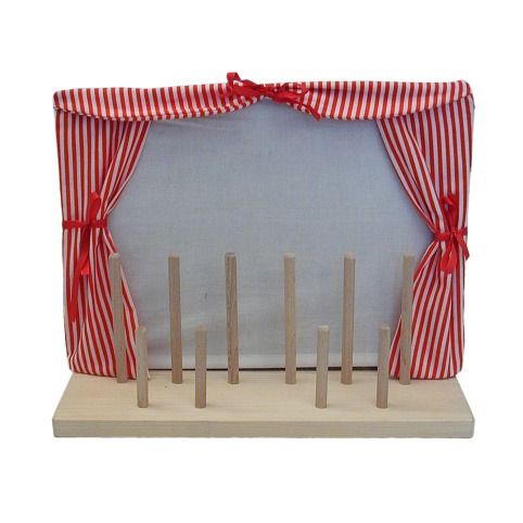Dřevěný stojánek pro vystavení až 10 ks prstových maňásků.