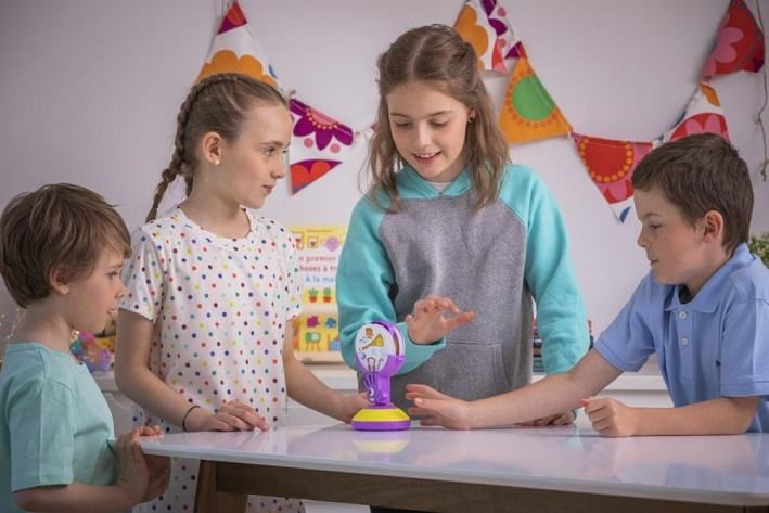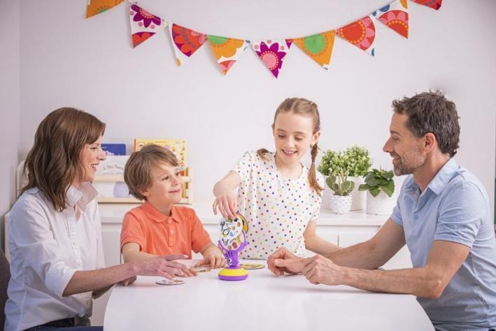 Nová verze hry Dobble, z které se vám zatočí hlava! Nový způsob hry - karty nejsou vidět v jednom okamžiku, ale rotují na otočné základně! U hry jdou nastavit dvě rychlosti a uzpůsobit tak obtížnost. K výhře budou hráči potřebovat hlavně rychlé reflexy, paměť ale i zručnost! Obsah balení: 57 nových symbolů, 55 karet, kovová krabička, otočná věž Dobble. Perfektní vizualizace obsahu v průhledné tubě! Rozměry: 12 x 26 cm.