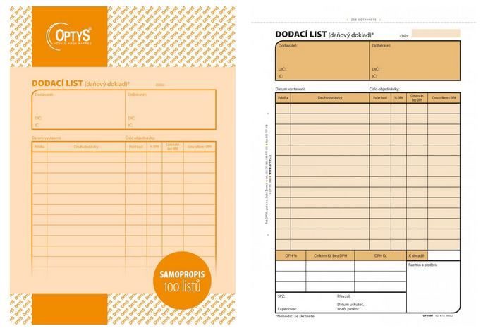 - PAPÍRNICTVÍ / TISKOPISY / ÚČETNÍ A DAŇOVÉ DOKLADY / Dodací listy / A5 / OPTYS