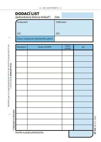 obsahuje 100 listů odtržitelných perforací, se zakládacím děrováním