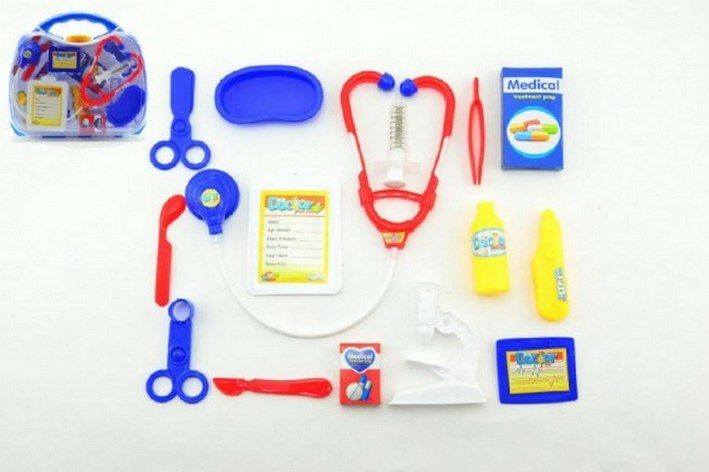 Chtějí se vaše děti stát lékařem či zdravotní sestrou? Rádi ošetřují a uzdravují všechny členy rodiny, plyšáky a panenky? Udělejte jim radost a kupte jim další doktorskou sadu, ve které najdou stetoskop, skalpel, pinzetu, léky, mikroskop. Celkem 16 kusů balených v plastovém kufru v rozměru 30 x 27 x 7,5 cm. Sada je vhodná pro děti od 3 let. Doktorská sada Vhodná pro děti od 3 let Vyrobena z plastu Balena v plastovém kufříku o rozměru 30 x 27 x 7,5 cm Obsahuje 16 kusů – pinzetu, skalpel, stříkačku, nůžky, léky, mikroskop, stetoskop