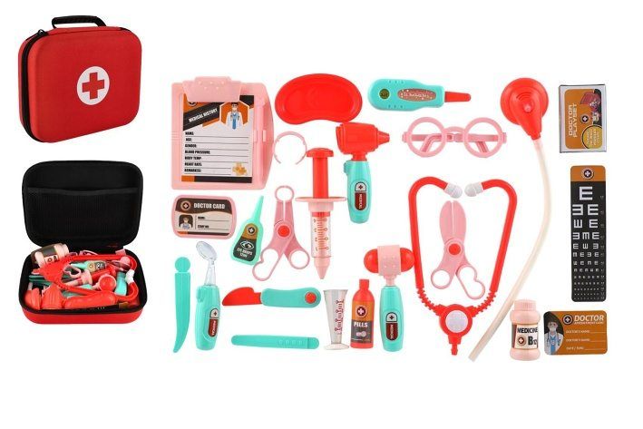 Dětská doktorská sada potěší všechny malé lékaře a lékařky. Praktický látkový kufřík ukrývá různé lékařské nástroje a doplňky, se kterými si děti mohou hrát na vyšetření pacientů, ošetření zranění nebo návštěvu ordinace. Hra podporuje dětskou fantazii, rozvíjí sociální dovednosti a pomáhá dětem překonat obavy z návštěvy lékaře.