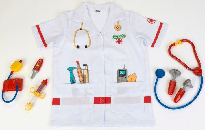 Doktorský oblek s doplňky, který nesmí chybět žádnému doktorovi! Obsahuje stetoskop, injekci, otoskop, tlakoměr, kladívko, teploměr a 1 plášť. Vhodné pro děti od 3 let.