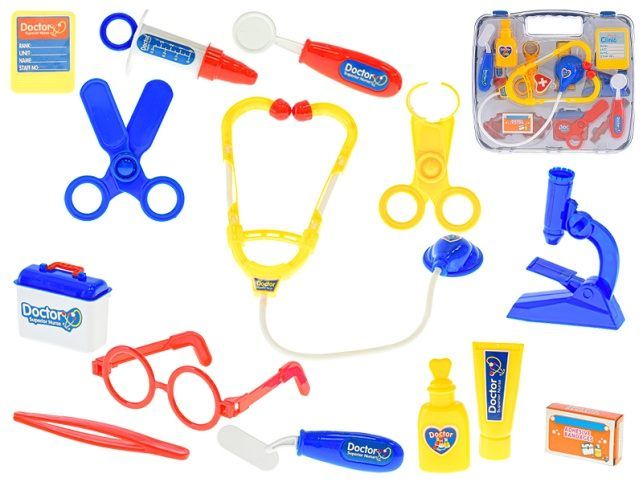Doktorská sada pro malé pány doktory a paní doktorky. Tento set obsahuje 14 ks plastového náčiní, bez kterého se opravdový lékař neobejde. Vše je uloženo v praktickém kufříku.