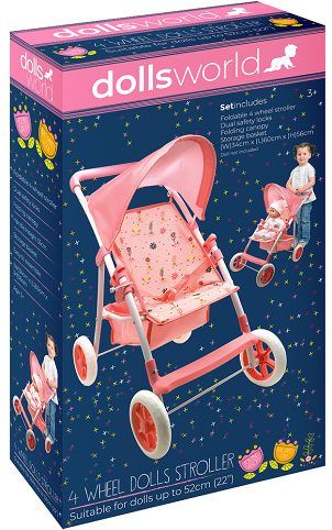 Dolls World Luxusní čtyřkolový skládací kočárek pro panenky 56 cm