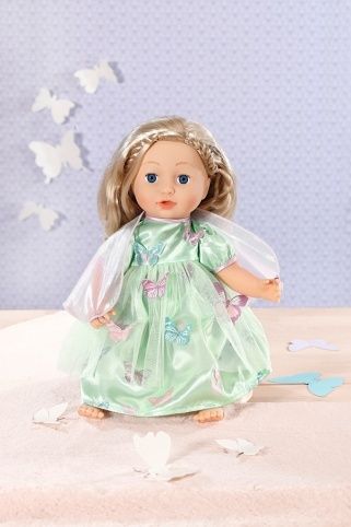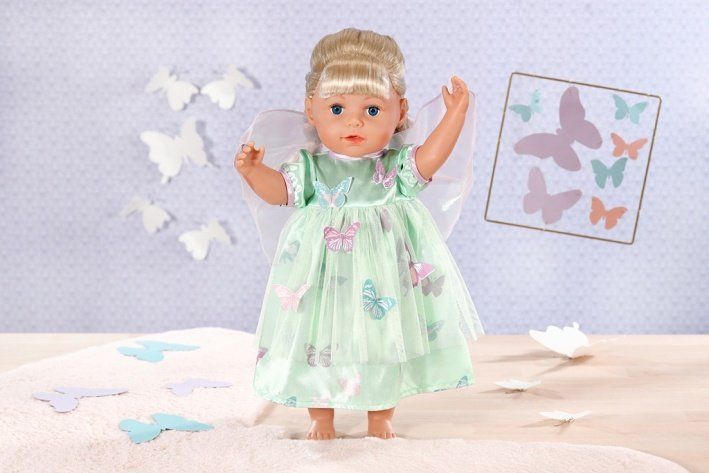 Něžní motýlci se třepotají po celých šatičkách Dolly Moda. Díky univerzálnímu střihu si oblečení můžou půjčovat různé panenky velikosti 39–46 cm. Skvěle padnou panenkám BABY born, Baby Annabell i jiným. Pastelově zelené pohádkové šatičky s vrstvenou sukní a nabíranými rukávy jsou celé posety rozkošnými motýlky. A aby se v kouzelnou motýlí vílu mohla proměnit i každá panenka, jsou na zadní straně našita lesklá křídla. • Originální Dolly Moda od Zapf Creation pro panenky BABY born, Baby Annabell a jiné. • Pro panenky velikosti 39–46 cm. • Rozšiřuje možnosti hry, podněcuje fantazii a povzbuzuje děti ke hře na malé rodiče. Dolly Moda Vílí oblečení s křídly pro panenky velikosti 39–46 cm.