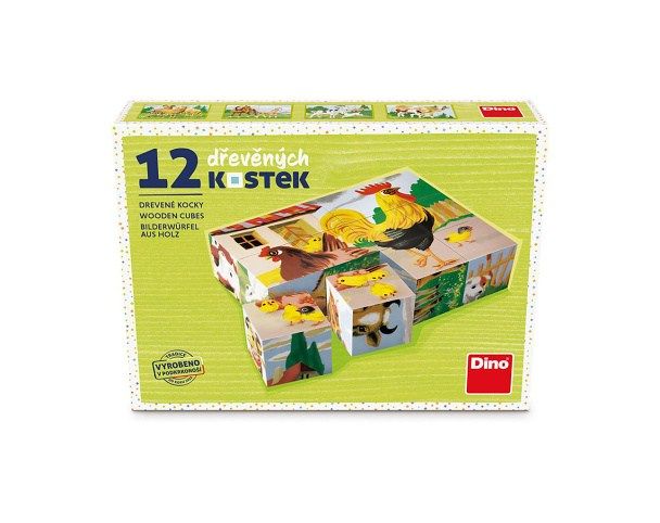 Dřevěné kostky s motivem domácích zvířátek zábavnou formou procvičí u nejmenších dětí jemnou motoriku, představivost a logické myšlení. Skládání kostek motivuje také k vyprávění příběhů a rozvíjí fantazii. Počet kostek: 12 Doporučený věk: od 3 let Dřevěné obrázkové kostky DINO jsou vyrobeny ze zdravotně nezávadných materiálů, splňují požadavky dané evropskou normou na bezpečnost hraček ČSN EN 71-1 a jsou atestované v ČR. Vyrobeno v České republice.
