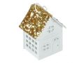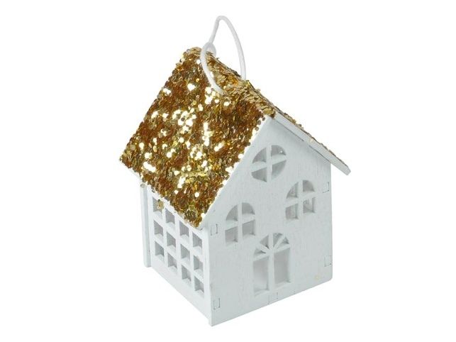 Domeček 3D dřevo bílý s glitrem 3ks/6cm