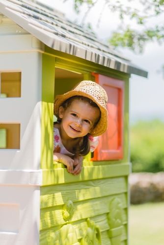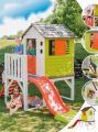 Krásný domeček na kůlech vhodný na hraní s několika kamarády. Má dvě okna s okenicemi, dvířka a žebřík. Vyrobeno z kvalitního, pevného, UV záření odolného plastu. Maximální nosnost je 4 x 50 kg. Rozměry domečku: 98 x 110 x 127 cm, výška kůlů 70 cm.