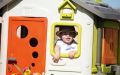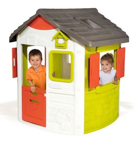 Barevný domeček pro děti se 4 stabilními a robustními stěnami, se 2 polovičními dveřmi, 2 okny s okenicemi a krmítkem pro ptáčky. Domeček je navržen tak, aby vyhovoval mnoha doplňkům, jako je letní kuchyně, piknikový stůl, komín, zahrádka, zvonek dveří a