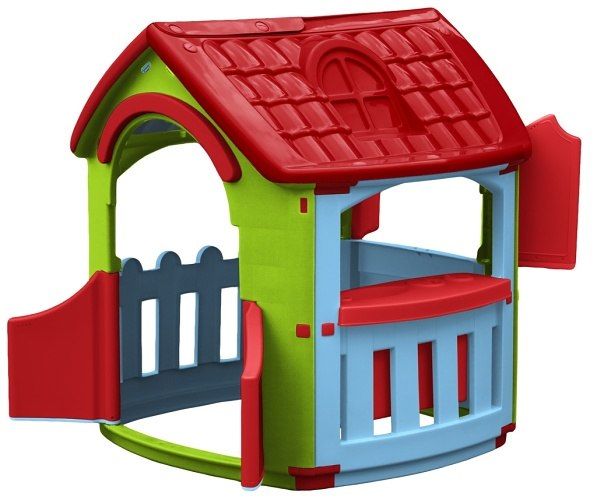 Plastový domeček s příslušenstvím spíše pro holky (kuchyňka),pěkné barvy,kvalitní zpracování, rozměry 101×105×111 cm.