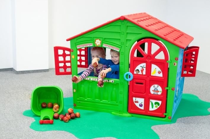 Dětský plastový domeček o půdorysu 140×111 cma výškou 115cm. Potěší vaše nejmenší svými užitnými vlastnostmi. Boční 2 okna s okenicemi a 1 zadní otevřené volné. Vstupní dveře a zadní východ na dvorek. Imitace vodovodního kohoutku n astěně domečku. Domeček má i světlo a vydává zvuky. Kvalitní zpracování. Domeček je vhodný nejen na zahradu, ale i do větších dětských pokojů. Rozměry (šxdxv): 140 × 111 × 115 cm
