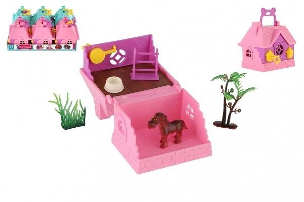 Domeček se zvířátkem/Pokladnička s klíčkem s doplňky 2v1 plast 9,5x10x8cm 2 barvy