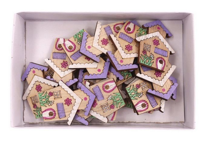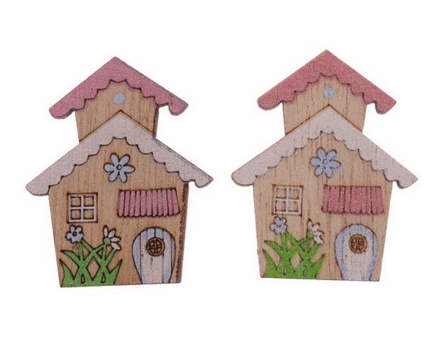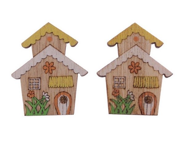 Samolepicí dřevěné domečky mini dekorace na tvoření, scrapbooking a DIY projekty - barevné