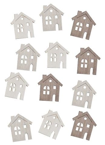 Domečky dřevěné 4 cm, 12 ks v sáčku