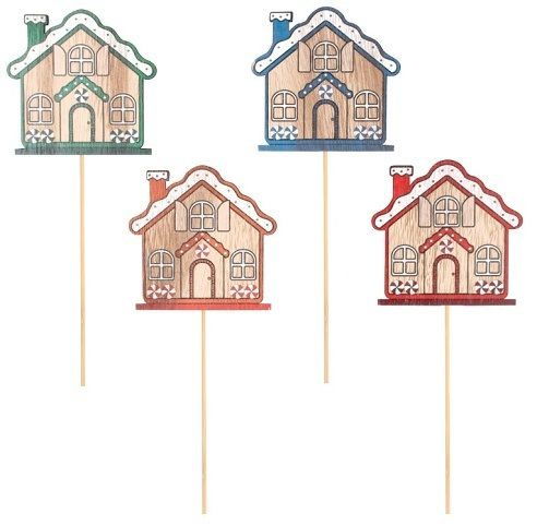 Domek barevný dřevěný 7,3 x 7 cm + špejle