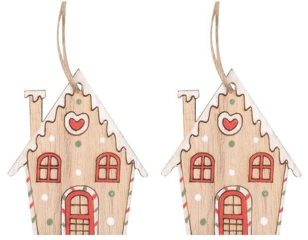 Domek s bílou střechou dřevěný na zavěšení 4,5 x 6 x 0,5 cm, 2 ks v sáčku