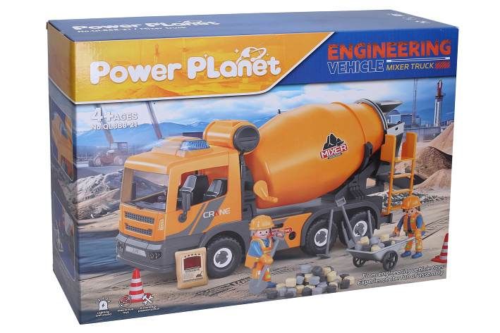 Domíchávač s efekty. Velikost 36cm. Světelné a zvukové efekty. Obsahuje domíchávač, figurky dělníků, kolečko, náklad, nářadí. 2xAAA baterie nejsou součástí.