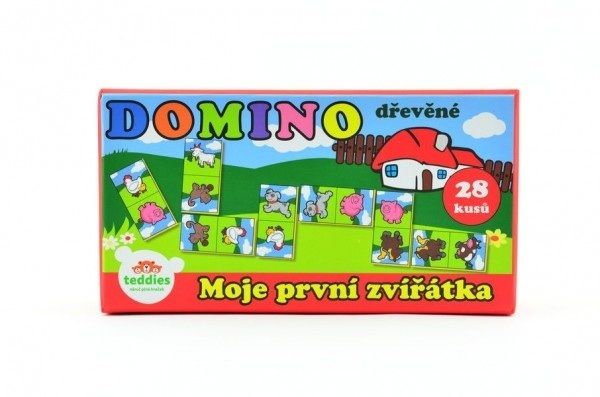 Domino Moje první zvířátka dřevo společenská hra 28ks v krabičce 17x9x3,5cm MPZ