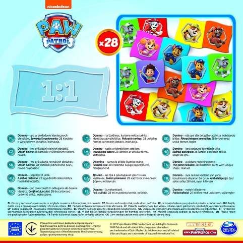 Domino papírové Paw Patrol/Tlapková patrola 28 kartiček společenská hra v krabici 20x20x5c