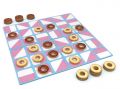 Lahodná a taktická bitva.Náhodně poskládejte ze 4 destiček herní plán, dejte každému 15 donutů a hrajte. Každý tah určuje, kam může hrát protihráč. Vaším cílem je sestavit řadu 5 donutů a neumožnit soupeři, aby se vám do ní vměstnal se svými.Jak hrát:První z vás umístí svůj donut na libovolné pole na herní ploše. Čára na poli, na které jste právě položili svůj donut, určuje, kam může zahrát svůj donut protihráč. Váš protihráč pak umístí jeden svůj donut na libovolné volné pole ve směrech určených touto čarou. Po umístění protihráčova donutu hrajete opět vy, a i vy musíte svůj další donut položit v linii určené čarou na právě obsazeném poli. Takto se střídáte.Pokud jsou již všechna pole ve směru určeném protihráčovým zahraným donutem obsazena, ignorujte výše uvedené pravidlo a zahrajte svůj donut na libovolné volné pole.Umístíte-li jeden nebo více svých donutů mezi dva donuty vašeho protihráče, dojde ke ""vložení"". Jakmile dojde k této situaci, obrátíte dva protihráčovy donuty, které s právě umístěným sousedí, vaší barvou nahoru.Obsah balení:30 dřevěných donutů4 oboustranné destičky herního plánu1 list pravidel