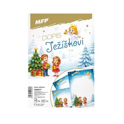 Dopis Ježíškovi-vánoční psaní pro děti plné kouzelHledáte krásný způsob, jak dětem zpříjemnit čekání na Vánoce? Dopis Ježíškovi je ideální vánoční aktivita, která rozvíjí dětskou fantazii a vytváří nezapomenutelné chvíle. Barevně ilustrovaný dopisní set je jako stvořený pro malá vánoční přání, sny i obrázky.Dopřejte dětem kouzlo psaní Ježíškovi tak, jak ho známe z vlastního dětství – s radostí, fantazií a jiskrou v očích.BALENÍ OBSAHUJE:- 2 listy formátu A5 (1× linkovaný, 1× nelinkovaný)- 1 vánočně laděnou obálkuUvedená cena je za 1 balení.