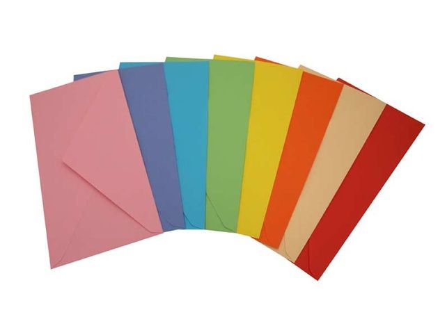 Dopisní obálka DL BALENÍ OBSAHUJE: - 200 ks barevných obálek (8 barev po 25 ks - růžová, červená, modrá, fialová, zelená, žlutá, oranžová, béžová) Uvedená cena je za 1 ks. Všech 200 ks je balených ve fólii.
