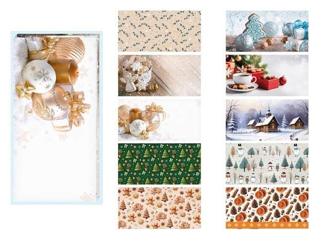 Celoplošně potištěné vánoční dopisní obálky DL s krycí páskou - Posíláte rádi vánoční dopisy? Jestli ano, tak si u nás pořiďte krásné dopisní obálky s vánočními motivy a nezapomeňte si u nás také objednat dopisní papír a propisku. Motivy nelze vybrat, zboží je zasíláno v náhodném mixu motivů. Uvedená cena je za 1 ks.