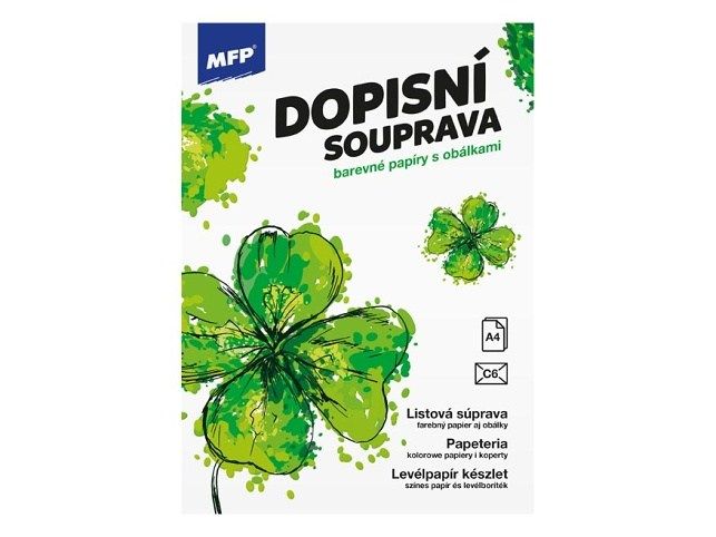 Dopisní souprava s obrázkem čtyřlístků pro štěstí. Píšete rádi dopisy svým známým? Pořiďte si u nás krásné dopisní papíry s různými motivy a nezapomeňte ani na psací potřeby. BALENÍ OBSAHUJE: - 10 potištěných dopisních papírů formátu A4 - 5 barevných poštovních obálek FORMÁT: A4 PROVEDENÍ: linkovaný Uvedená cena je za 1 balení. K dokonalosti je vše baleno v průhledném obalu se závěsem.