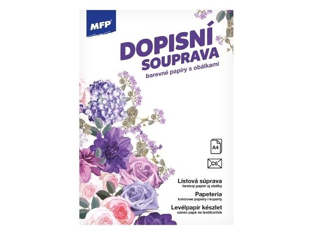 Dopisní souprava s obrázkem květů - Píšete rádi dopisy svým známým? Pořiďte si u nás krásné dopisní papíry s různými motivy a nezapomeňte ani na psací potřeby. BALENÍ OBSAHUJE: - 10 potištěných dopisních papírů formátu A4 - 5 barevných poštovních obálek FORMÁT: A4 PROVEDENÍ: linkovaný Uvedená cena je za 1 balení. K dokonalosti je vše baleno v průhledném obalu se závěsem.
