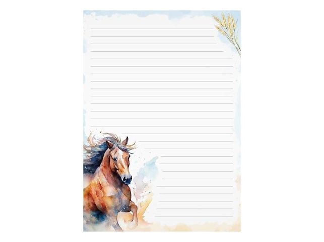 Pro milovníky koní! Dopisní sada s motivem koně v akvarelovém stylu přináší do vašeho psaní volnost, sílu i krásu. Linkované papíry a barevné obálky vytvoří prostor pro vzkazy plné emocí a originality. BALENÍ OBSAHUJE: - 10 potištěných dopisních papírů formátu A4 - 5 barevných poštovních obálek formátu C6 MOTIV: kůň FORMÁT: A4 PROVEDENÍ: linkovaný Baleno v plastovém průhledném obalu se závěsem. Uvedená cena je za 1 balení.