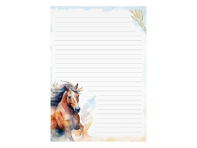 Pro milovníky koní!Dopisní sada s motivem koně v akvarelovém stylu přináší do vašeho psaní volnost, sílu i krásu. Linkované papíry a barevné obálky vytvoří prostor pro vzkazy plné emocí a originality.BALENÍ OBSAHUJE:- 10 potištěných dopisních papírů formátu A4- 5 barevných poštovních obálek formátu C6MOTIV: kůňFORMÁT: A4PROVEDENÍ: linkovanýBaleno v plastovém průhledném obalu se závěsem.Uvedená cena je za 1 balení.