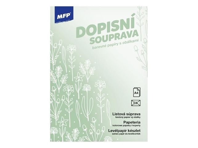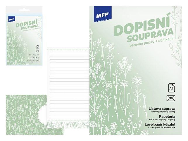 Dopisní souprava s obrázkem Květy - Píšete rádi dopisy svým známým? Pořiďte si u nás krásné dopisní papíry s různými motivy a nezapomeňte ani na psací potřeby. BALENÍ OBSAHUJE: - 10 potištěných dopisních papírů formátu A4 - 5 barevných poštovních obálek FORMÁT: A4 PROVEDENÍ: linkovaný Uvedená cena je za 1 balení. K dokonalosti je vše baleno v průhledném obalu se závěsem.
