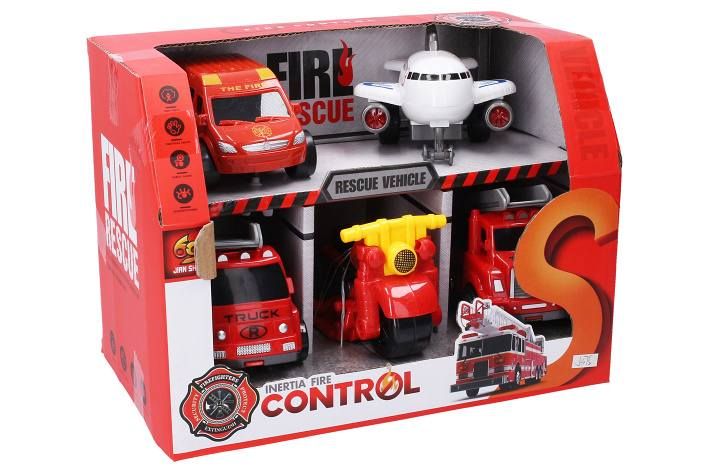 Sada dopravních hasičských prostředků, záleží jen na tobě který použiješ! Plastové dopravní prostředky jezdí na zpětné natažení a upoutají svým roztomilým vzhledem.