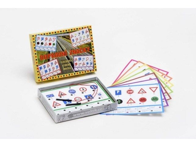 Hra pro děti od 6 let, s jejíž pomocí se naučí hravou formou 80 dopravních značek. Hra obsahuje 8 výměnných listů s vyobrazeními a názvy 80 nejběžnějších dopravních značek. Úkolem je přiřadit ke každé značce správný název. Vložit baterie 2xAA.