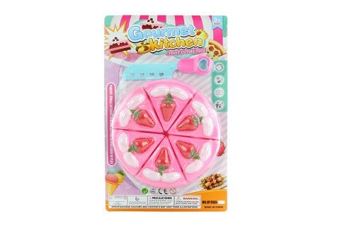 Sada krájení dortu. Balení obsahuje dort rozdělený na 6 dílků spojených suchým zipem a nožík na krájení. Materiál plast. Rozměry balení cca 30x19x3 cm. Průměr dortu 16 cm. Věk 3+