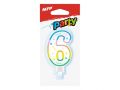 Dortová svíčka ve tvaru čísla 6 - Pořiďte oslavenci dortové svíčky, které dozdobí už tak dokonalý dort a splní oslavenci jeho tajné přání! Svíčka má z přední strany duhový podklad. VAROVÁNÍ: Slouží jako dekorace, není hračka, není určeno ke konzumaci! Při manipulaci s otevřeným ohněm dbejte zvýšené opatrnosti, nevystavujte průvanu. Svíčku postavte svisle na nehořlavý podklad. Nenechávejte hořet bez dohledu. Nutná stálá přítomnost dospělé osoby! Uvedená cena je za 1 ks.