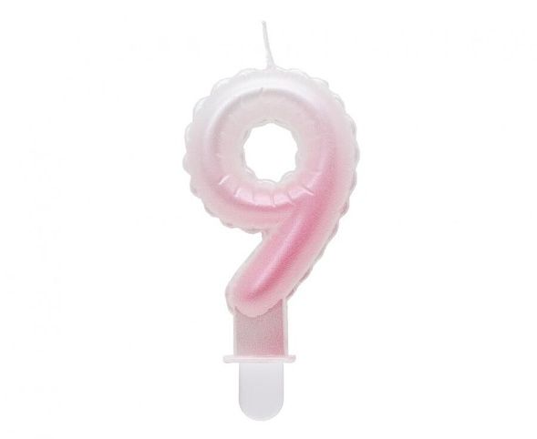 Dortová svíčka č. 9 balónková bílo-růžové