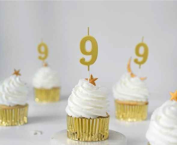 Dortová svíčka č. 9 zlatá - pikery