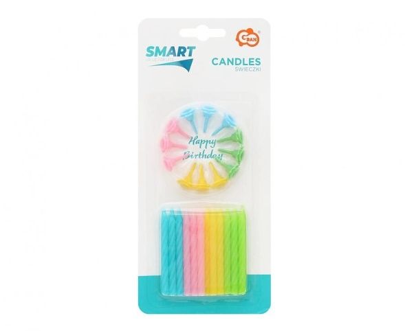 Dortové svíčky 12 ks pastelové s podstavcem