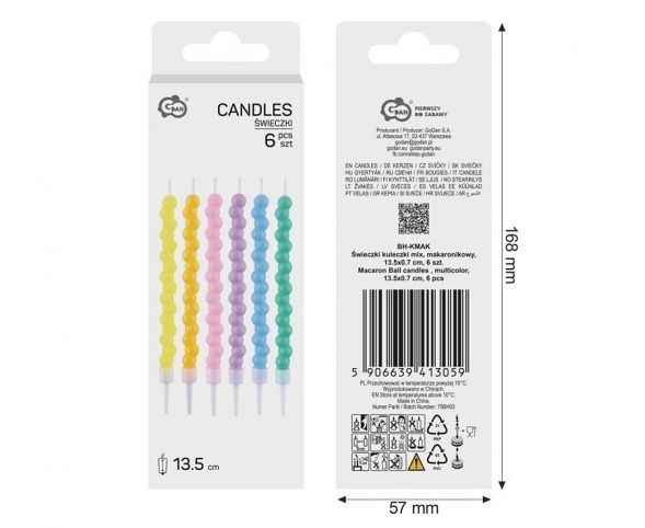 Dortové svíčky 13,5 cm 6 ks kouličky barevný mix