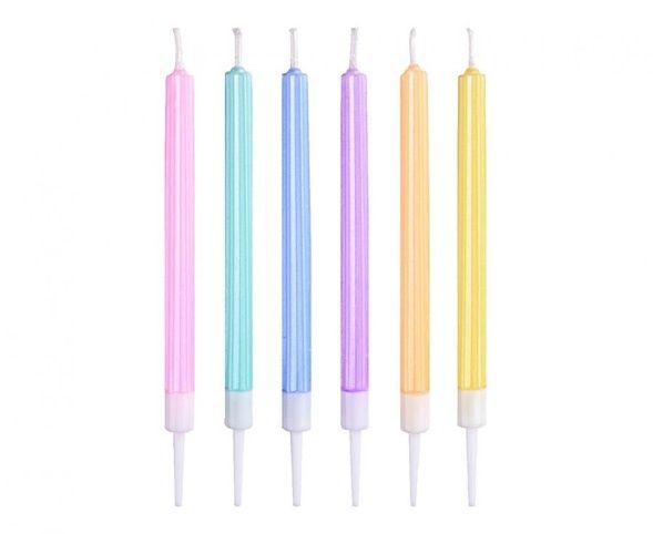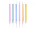 Jednobarevné dortové svíčky - pastelový barevný mix o velikosti 12,5 cm. V balení 6 ks. Průměr 0,8 cm.