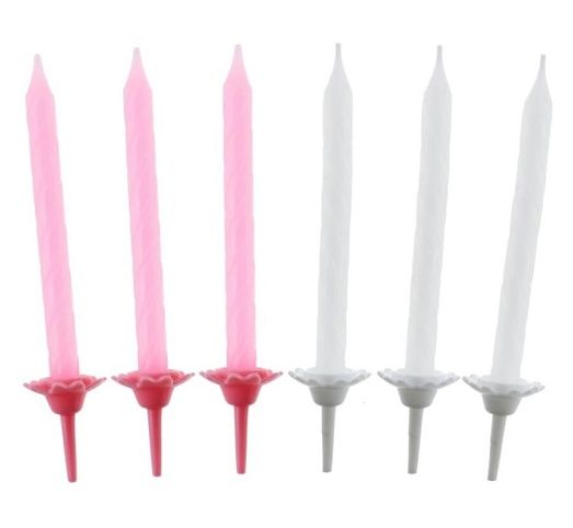 Jednobarevné dortové svíčky - růžovo - bílé.