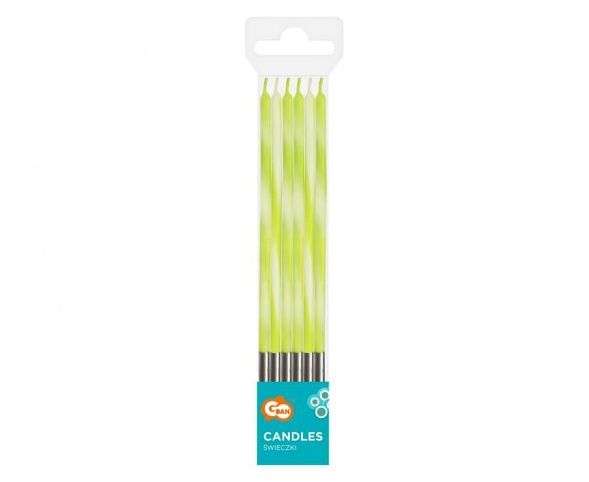 Dortové svíčky Candy jsou krásným doplňkem k narozeninovému dortu. Balení obsahuje 6 ks svíček, které mají limetkovou barvu.