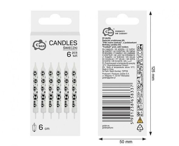 Dortové svíčky FOTBAL 6cm 6ks