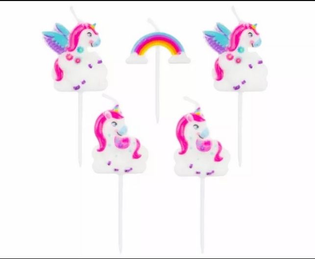 Balení obsahuje 5 ks svíček na dort s Jednorožcem.