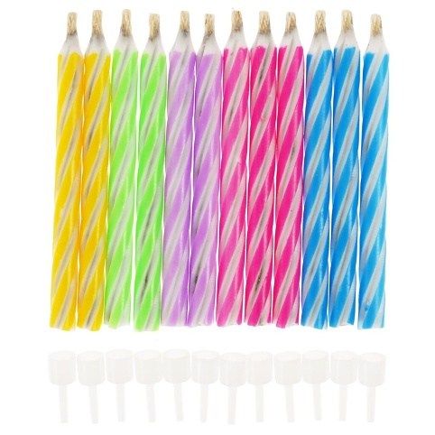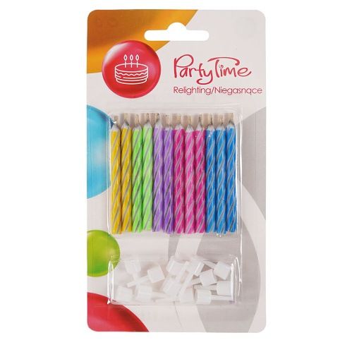 Svíčky dortové nehasnoucí 12 ks s podstavcem. Svíčky po sfouknutí se opakovaně zapalují.