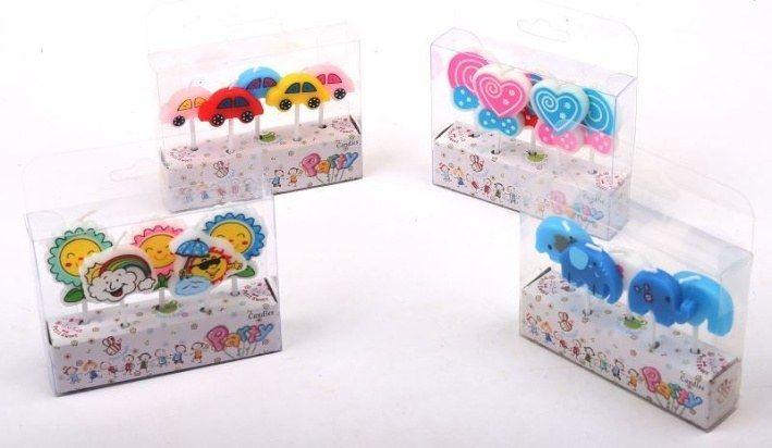 Dortové svíčky Párty 5ks v boxu 4 motivů 21139
