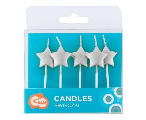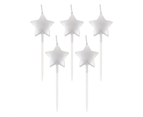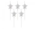 Dortové svíčky pikery - hvězdičky stříbrné 5 ks