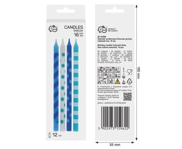 Dortové svíčky PUNTÍK 12cm 16ks modrý mix
